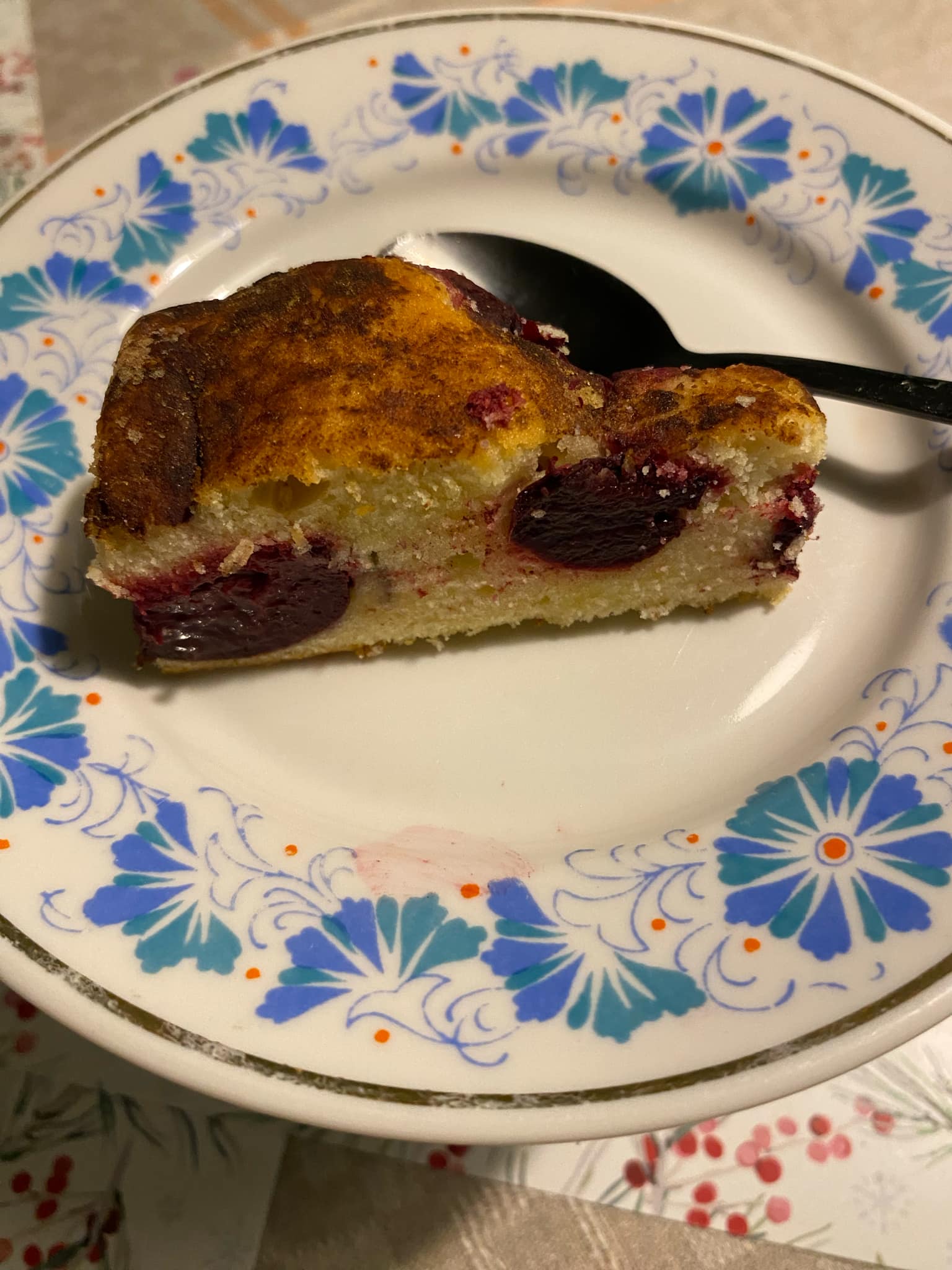 Jahu 135 g, 3 muna, või 115 g, suhkur 135-150 g+ 2 sl, 1 tl vanillisuhkurt, 1 tl küpsetuspulbrit, sool, 12 ploomi, 1 tl jahvatatud kaneeli.